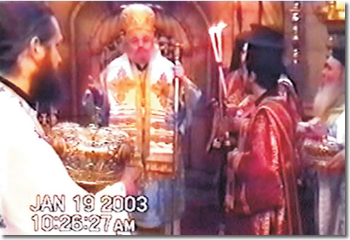 მირონმდენი ხატის წინაშე ლოცვას აღავლენს იერუსალემის პატრიარქი ირენეოს I